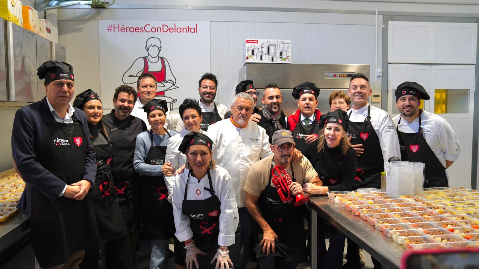 Cámara Solidaria-Alicante Gastronómica Solidaria cocinará y repartirá durante estas fiestas de Navidad 9.000 menús navideños entre personas sin hogar y familias sin recursos de la provincia de Alicante. Este año la acción social se intensifica y durante todo el periodo festivo se repartirán 9.000 menús especiales, 4.500 por semana, junto con las elaboraciones navideñas de los días de Nochebuena, Navidad, Nochevieja, Año Nuevo y Reyes. En el cocinado ha participado el maestro pastelero Paco Torreblanca junto con los chefs Estrella Michelin Kiko Moya de L’Escaleta; Cristina Figueira de El Xato; Joaquín Baeza Rufete de Restaurante Baeza & Rufete; Ferdinando Bernardi de Casa Bernardi; y los cocineros Soles Repsol Aurora Torres de Lula; Pablo Montoro de Espacio Montoro; y Dani Frías de La Ereta. Todos ellos acompañados por Gonzalo Vigueras, jefe cocina de la iniciativa solidaria, además de empresarios de la provincia de Alicante y los voluntarios de la asociación, los conocidos como #HéroesConDelantal.