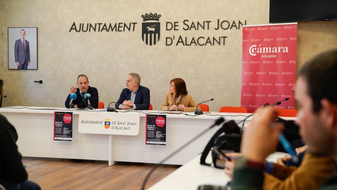 El presidente de la Cámara de Comercio de Alicante, Carlos Baño, el alcalde de Sant Joan d’Alacant, Santiago Román, y la concejala de Empleo, Charo Tomás, han presentado hoy los cursos del Programa Talento Joven y 45+ que se impartirán este 2026 en este municipio de l’Alacantí. El programa Talento Joven de la Cámara de Alicante ofrece este año tres itinerarios formativos gratuitos para menores de 30 años y a ello se suma un curso del programa 45+.