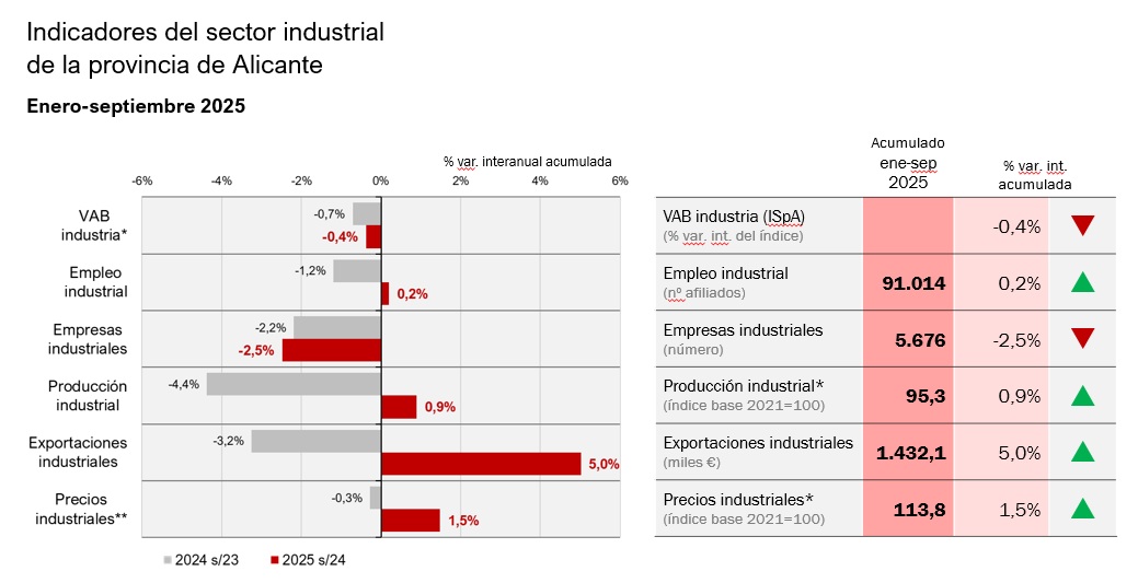 La industria alicantina da muestras de una incipiente recuperación impulsada por algunos factores, como el recorte de los tipos de interés, el aumento de la demanda interna y un contexto exterior, mejor de lo esperado hace unos meses.