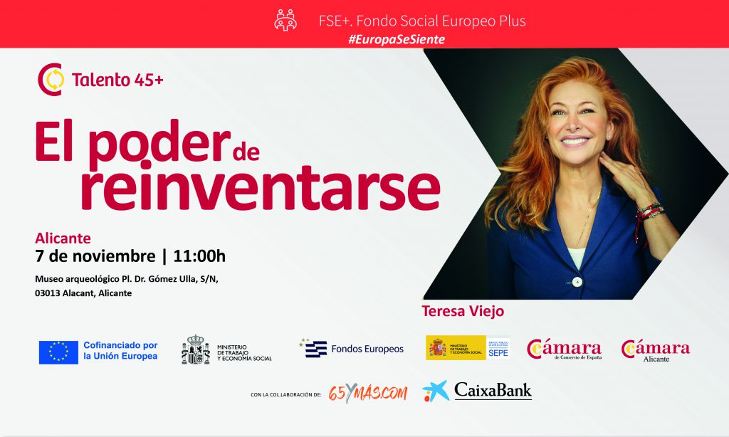 El próximo viernes 7/11/2025 la Cámara de Comercio de Alicante, en colaboración con el SEPE, 65ymás y CaixaBank celebraremos el Acto “El Poder de Reinventarse” una campaña de sensibilización y empoderamiento de los mayores de 45 años que se encuentran en situación de desempleo. Este acto tendrá lugar en el Museo Arqueológico «MARQ», ubicado en la Plaza Dr. Gómez Ulla, s/n 03013 Alicante.