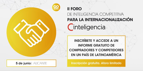 Coneixes els principals importadors i competidors del teu producte a Amèrica Llatina? Després d'assistir-hi, rebràs un codi per a la descàrrega gratuïta d'un informe actualitzat sobre compradors i competidors i les seues operacions comercials. Amb aquest informe podràs traçar una estratègia comercial en un d'estos països: Argentina, Xile, Colòmbia, Costa Rica, Equador, Panamà, Paraguai, Perú, Uruguai o Veneçuela. Organitzat per la Cambra de Comerç de Alicante i IVACE Internacional, el Foro està cofinançat al 50% per Fons Europeus FEDER i l'Institut Valencià de Competitivitat Empresarial-IVACE. Aconsegueix el teu informe i inicia les teues operacions comercials en Llatí Amèrica assistint a l'II Fòrum d'Intel·ligència Competitiva per a la Internacionalització!! |
