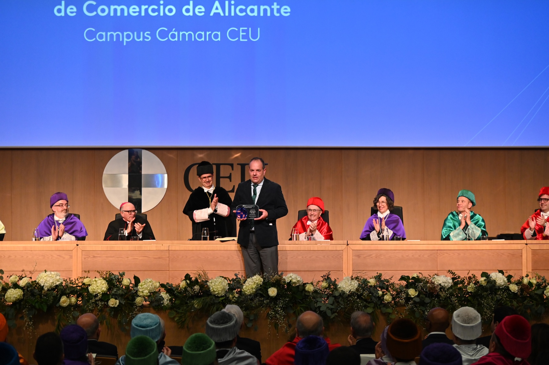 La Universidad CEU Cardenal Herrera (CEU UCH) ha celebrado el acto académico con motivo de la festividad de la Conversión de San Pablo, patrón de la Fundación Universitaria San Pablo-CEU a la que pertenece. El rector, Higinio Marín, ha entregado diversos premios y reconocimientos, entre ellos, a la Cámara de Comercio de Alicante, por la creación de Campus Cámara CEU, y a las entidades y empresas que colaboran en sus seis nuevas Cátedras de investigación: el Colegio Notarial de Valencia, la Dirección General de Salud Mental y Adicciones de la Conselleria de Sanidad, el Villarreal CF, Roche Farma España, la empresa Mensoft y el BAT Institute.
