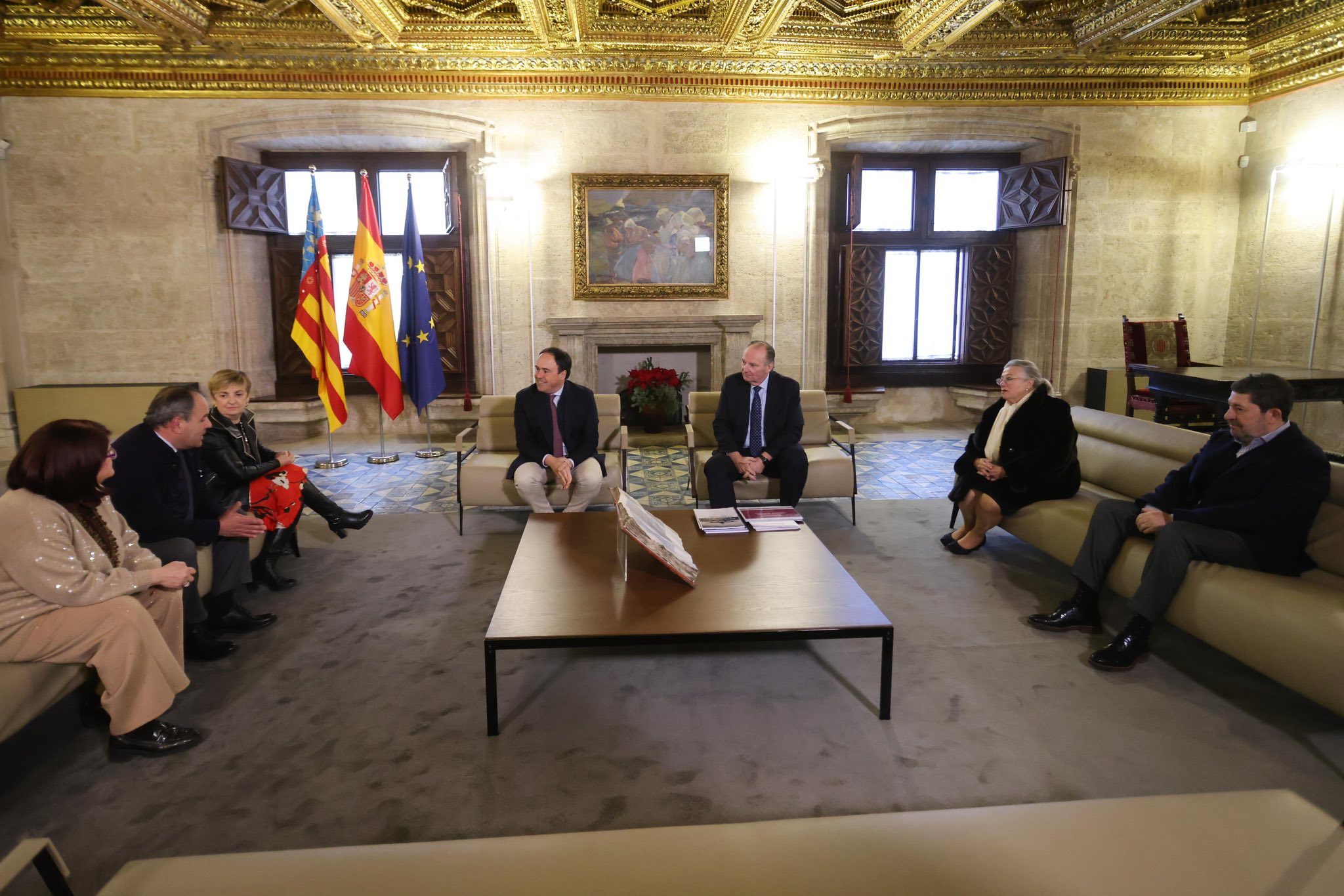 El president de la Generalitat, Juanfran Pérez Llorca, ha mantenido una reunión con los miembros del Comité Ejecutivo del Consejo Superior de Cámaras de la Comunitat Valenciana, compuesto por su presidente, José Vicente Morata, por el presidente de la Cámara de Alicante, Carlos Baño, por la presidenta de la Cámara de Castellón, Lola Guillamón, por la presidenta de la Cámara de Alcoy, Lucía Pascual y por el presidente de Cámara de Orihuela, Mario Martínez.